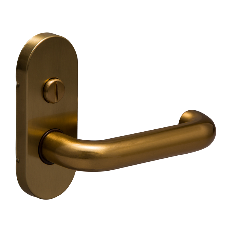 不可锁门通道锁, 椭圆形锁盒盖, 氧化铝膜处理金色 |