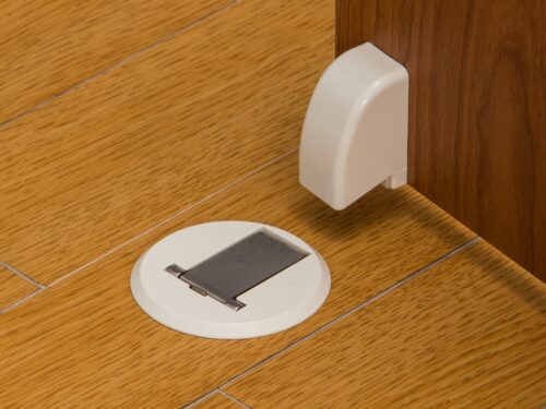 ・利用磁铁的力量将门固定到位的门挡。
