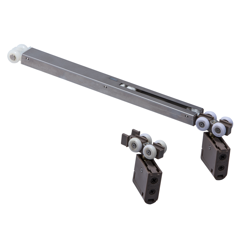 Made to be installed on an indoor sliding door, this top-hung damper will slowly pull the door from ±70 mm before it closes. Thus, it can reduce the unpleasant noise of the door hitting the frame. The door will close completely without any gap regardless of the strength or speed adjusted during the installation. This product has passed the 200,000 times operation test and comes with an adjustable roller, and wheels with bearing for optimal long-term performance. Not only offering excellent technical function, but this soft closer is also fully recessed to embraces a stylish architectural appearance. This top hung soft closer can be attached to both ends of the door. ※1