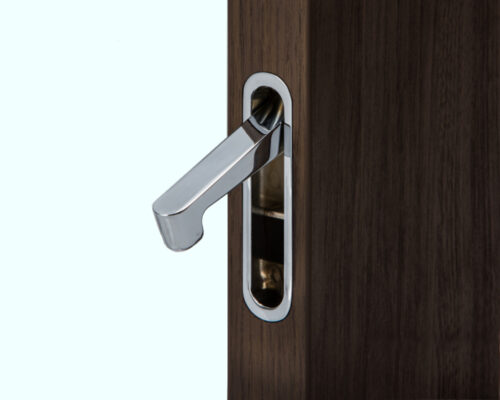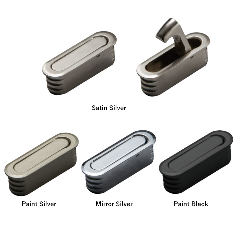 The edge pull is intended for the pocket door edge, but this one is also applicable to folding doors and underfloor storage. The product allows the finger grip to retract from the door by pushing the upper part. The appearance is flush mount, and the mounting screws are invisible.