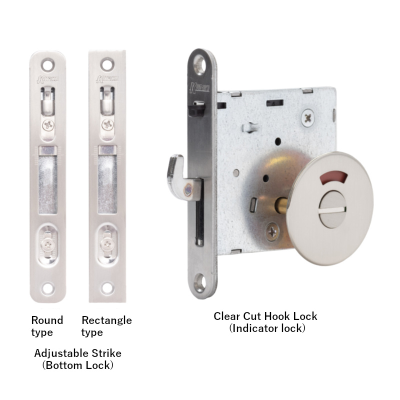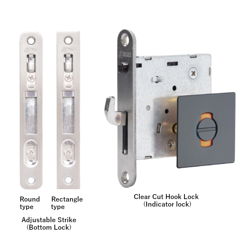 This hook lock for indoor sliding doors is good to prevent the door from accidentally being locked. It is impossible to operate the lock unless the door is hitting the trigger part and close perfectly. The product is universal as it can be configured with a standard lever or UD lever with a bigger grip so that everybody can use it easily. UD lever also uses blue and orange indicators, which is easier for anyone to recognize. The cylinder type uses a dimple key that provides 100 combinations, and there are 2 master keys available to generate 126 different child keys combinations.