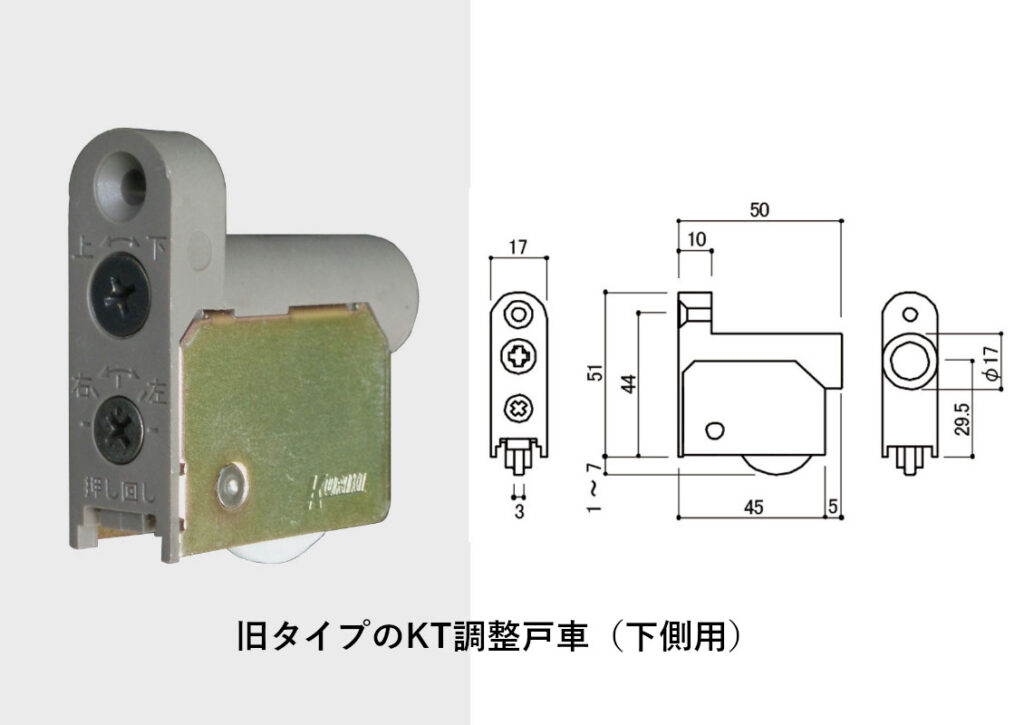 ※旧タイプのKT調整戸車と互換性がありますので、引戸の掘り込みは同じです。