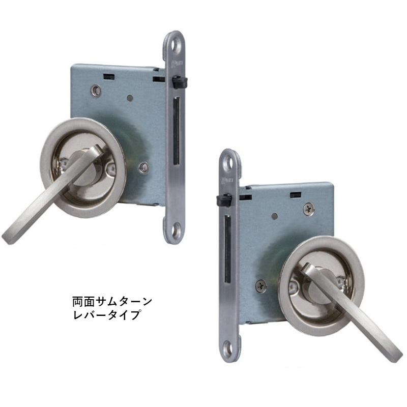 上鎌錠 BS38 フロント角 【丸座】 室内側:レバー 室外側:レバー(両面サムターン) 色調:サテンシルバー |
