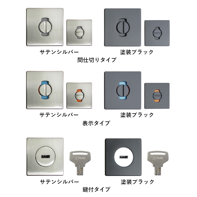 ・サムターンは標準タイプ、レバータイプ、 UDレバータイプの3種類から選べます。